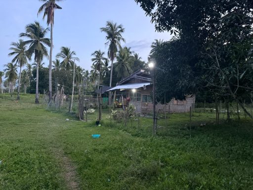 My house is surrounded by a makeshift fence made from tree limbs driven into the ground and wire squares. The landlord has decorated the simple house with solar flood lights and solar Christmas lights in stark contrast to the native house and jungle surrounding it. In the end, it’s really a thing of simplistic beauty. It’s the “simple” that makes it so attractive.